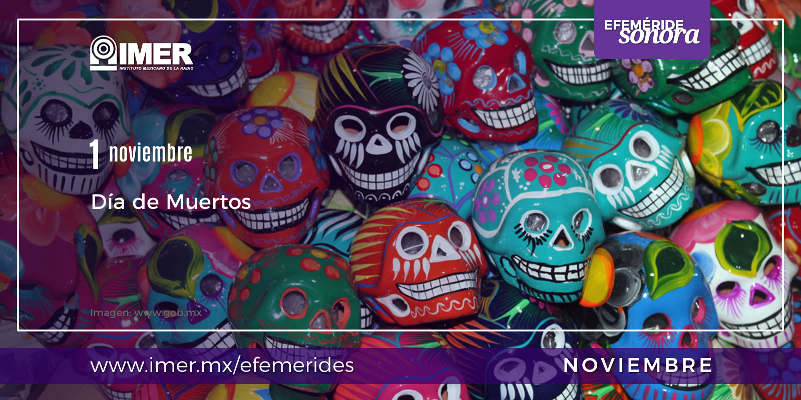 Nov12018EfeméridesNoviembreDía de Muertos. Escucha el programa “Canto a la diversidad”, dedicado a los muertos, transmitido en 2004. https://www.imer.mx/wp-content/uploads/sites/36/efemerides_01nov_muertos_FN08010132498.mp3 jueves 1 de noviembre de 2018 Compartir esta publicación: Share on FacebookShare on Facebook Share on XShare on X Share on WhatsAppShare on WhatsApp Related posts31 de marzo de 1727: Fallece el matemático y físico Isaac Newtonviernes 31 de marzo de 202330 de marzo de 1932: Se estrena la película “Santa”jueves 30 de marzo de 202329 de marzo de 1982: Fallece el compositor y director de orquesta Carl Orffmiércoles 29 de marzo de 202328 de marzo de 1942: Nace el cantante de ópera Samuel Rameymartes 28 de marzo de 202327 de marzo de 1972: Fallece el artista holandés M.C. Escherlunes 27 de marzo de 202326 de marzo de 1827: Fallece el músico alemán Ludwig Van Beethovendomingo 26 de marzo de 2023