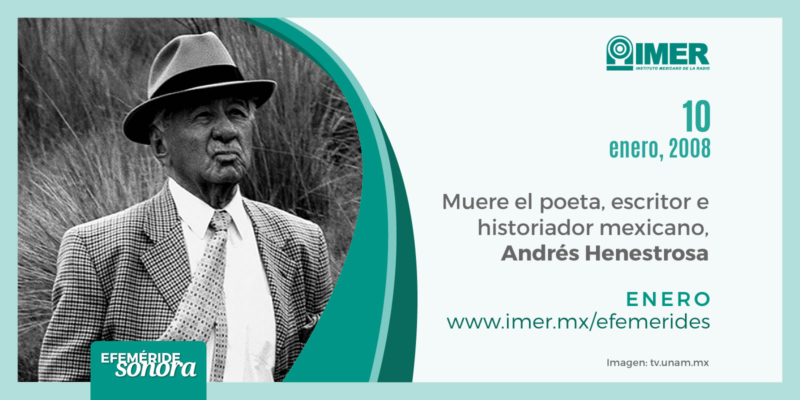 #EfemérideSonora El 10 de enero del 2008 muere Andrés Henestrosa, poeta, escritor e historiador mexicano; recibe destacados reconocimientos nacionales e internacionales. En 1964 ingresa a la Academia Mexicana de la Lengua. “Los hombres que dispersó la danza”, “Retrato de mi madre” y “Los caminos de Juárez”, son algunas de sus obras más reconocidas.