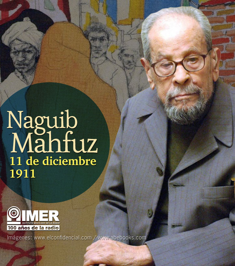 Nace Naguib Mahfuz, escritor egipcio, considerado un gigante de la literatura árabe; recibe el Premio Nobel de Literatura en 1988; autor de relatos, novelas y guiones cinematográficos, destacan: “El callejón de los milagros”, “Principio y fin”, “Hijos de nuestro barrio” y “Entre dos palacios”. Escucha un comentario sobre Mahfuz, a cargo de Juan María Alponte, en el programa “El mundo en México”, transmitido en 1993.