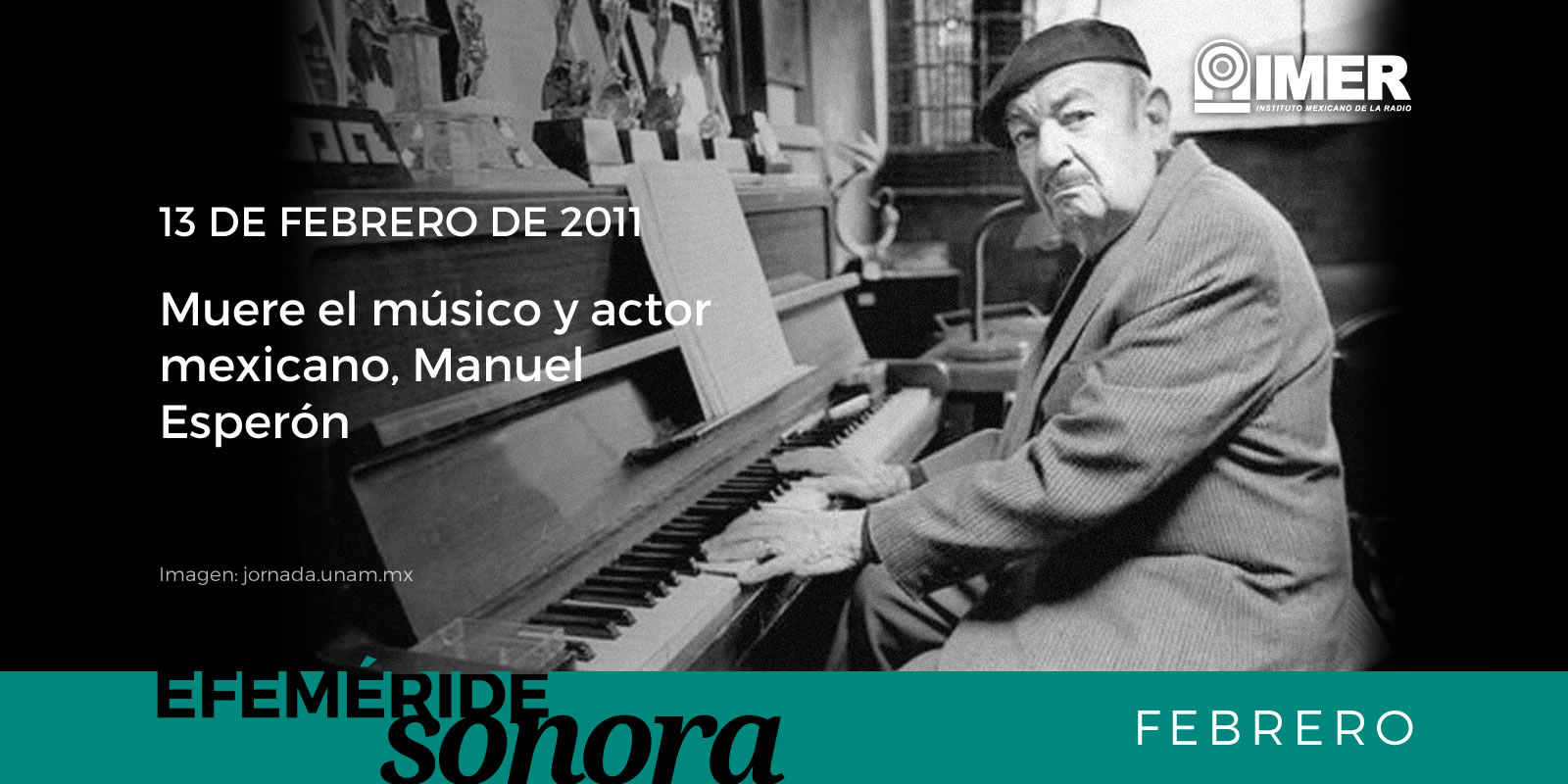 2011 Muere Manuel Esperón, músico y actor mexicano, considerado el más prolífero de la época de oro del cine mexicano. Llegó a ser director musical de cerca de 500 películas y paralelamente director artístico de varias estaciones de radio. Compositor de cabecera de los dos más grandes astros de la canción mexicana: Jorge Negrete y Pedro Infante, desde su iniciación, hasta la muerte de ambos. Escucha el programa “México Canta”, transmitido en 1999, en el que se presenta la vida y música de Manuel Esperón.