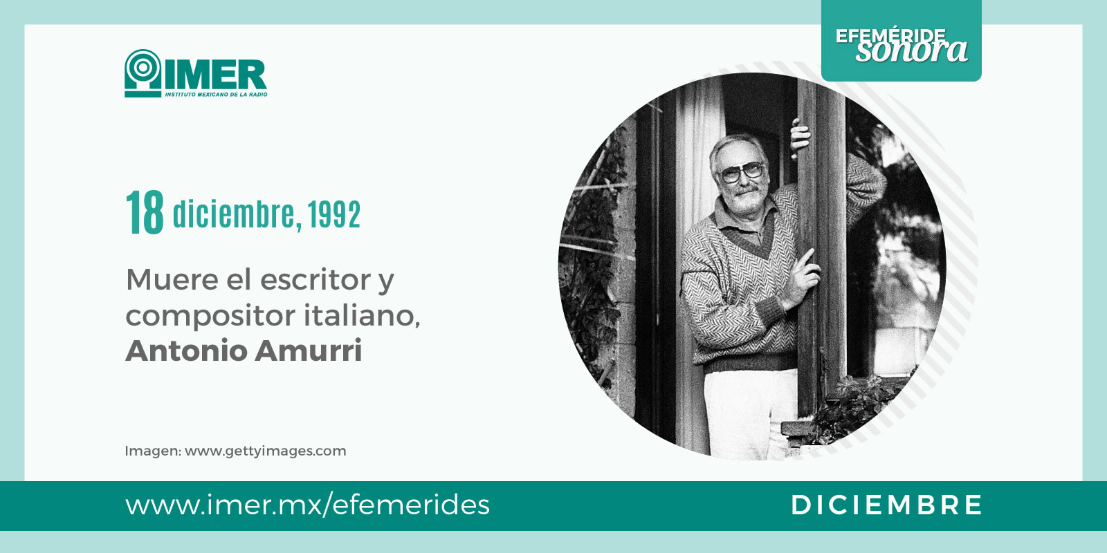 #EfemérideSonora El 18 de diciembre de 1992 muere Antonio Amurri, escritor y compositor italiano, famoso por sus libros sobre historias satíricas familiares, entre las que destacan “Vida familiar”, “Cómo matar a mamá y a papá” y “Cómo matar a una suegra”.