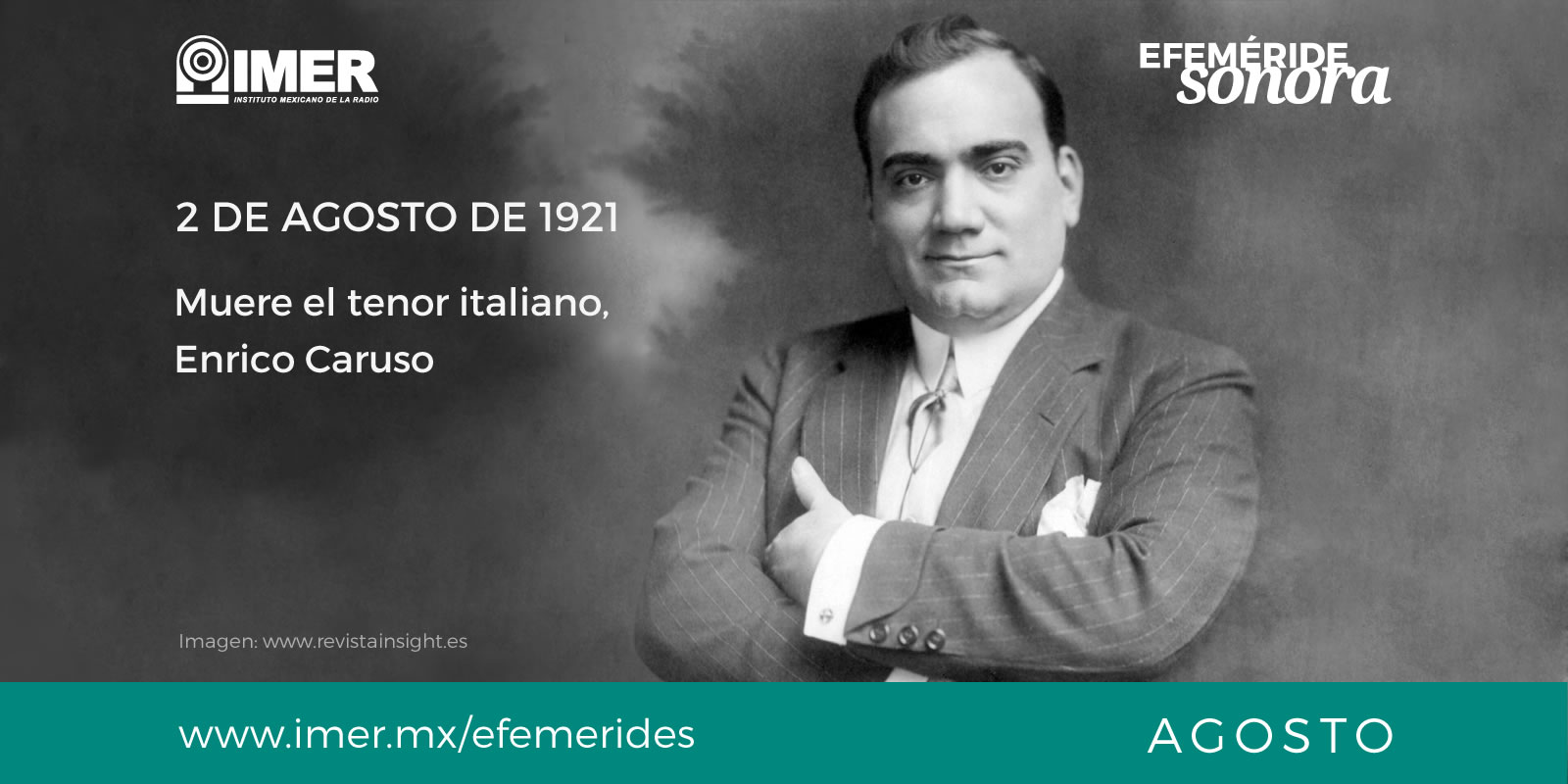 #EfemérideSonora El 2 de agosto de 1921 muere Enrico Caruso, tenor italiano, pionero de la música grabada.