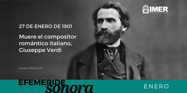1901 Muere Giuseppe Verdi, compositor romántico italiano de ópera del siglo XIX. Autor de títulos importantes como Rigoletto, La traviata, Aida, Otello y Falstaff entre otros. Escucha el programa Memorias y presencias, transmitido desde el año 2000 a la fecha, conducido por Eduardo Lizalde, quien presenta al tenor mexicano Ramón Vargas, en un concierto dedicado…