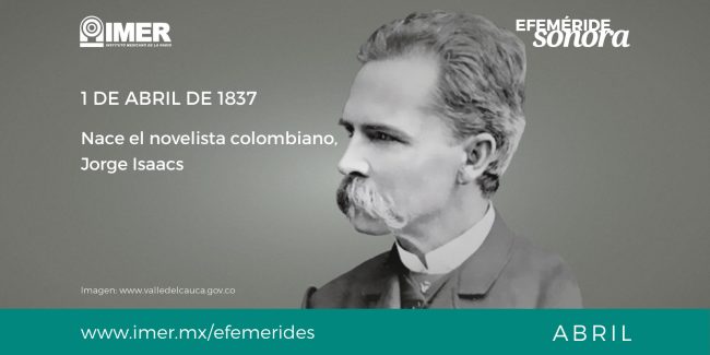 #EfemérideSonora El 1 de abril de 1837 nace Jorge Isaacs, novelista y poeta colombiano.   Escucha a Severo Mirón quien narra “Maria”, novela romántica publicada 1867 de Jorge Isaacs, en el programa “Platícame un libro”, transmitido en 1992.