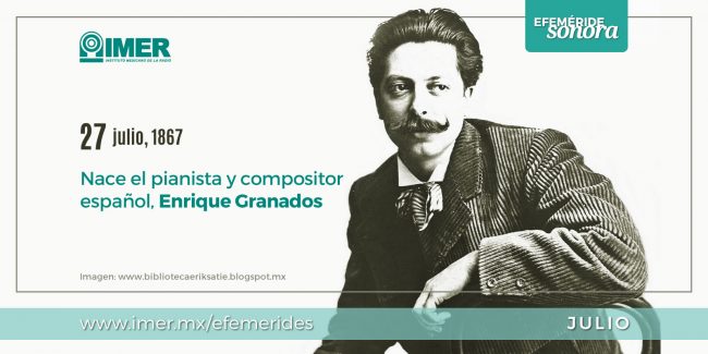 #EfemérideSonora El 27 de julio de 1867 nace Enrique Granados, pianista y compositor español; extraordinario intérprete de la música popular hispánica a la que estilizó con su alto sentido poético y fina intuición.