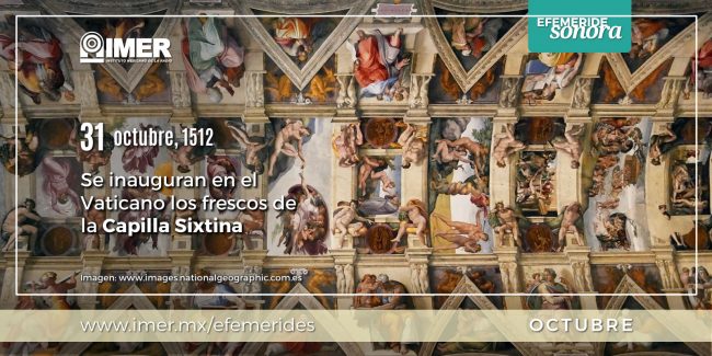 El 31 de octubre de 1512 se inauguran en el Vaticano los frescos de la Capilla Sixtina pintados por Miguel Ángel Buonarroti.