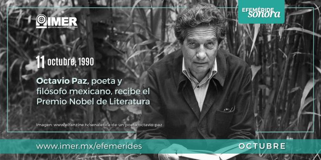 #EfemérideSonora El 11 de octubre de 1990 Octavio Paz, poeta, narrador y filósofo mexicano, recibe el Premio Nobel de Literatura.