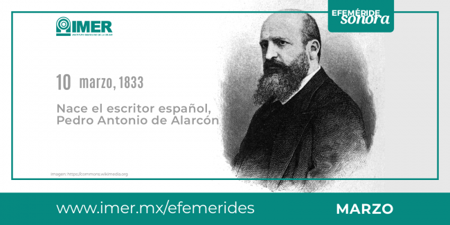 #EfemérideSonora El 10 de marzo de 1833 nace Pedro Antonio de Alarcón, escritor español, comienza a escribir desde los diecisiete años con un estilo sencillo.