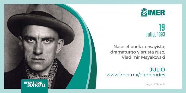 19 de julio de 1893, Nace Vladimir Mayakovski, poeta, ensayista, dramaturgo y artista ruso, símbolo de la poesía innovadora de principios del siglo XX.