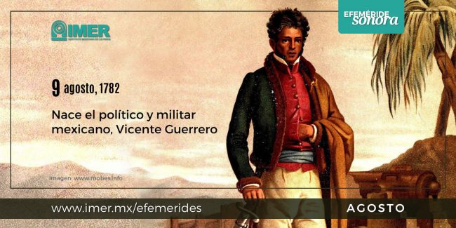 9 de agosto de 1738, Nace Vicente Guerrero, político y militar mexicano, participa en la Guerra de Independencia. Muere fusilado a los 48 años.