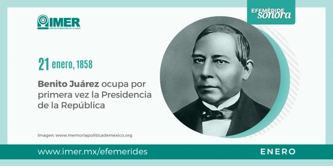 El 21 de enero de 1858, Benito Juárez ocupa por primera vez el cargo de Presidente de la República Mexicana.