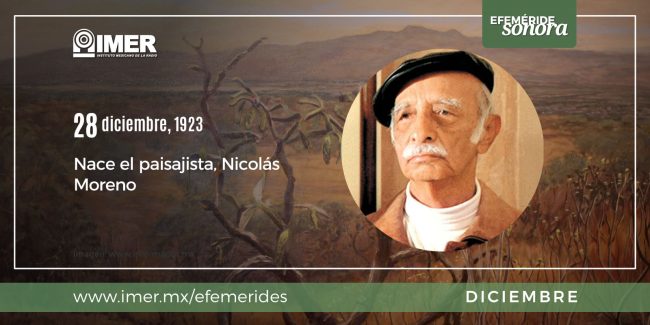 Nace Nicolás Moreno, pintor mexicano de paisajes, considerado como uno de los mejores en su género en el siglo XX, así como heredero de la tradición mexicana de José María Velasco y Dr. Atl. Muere a los 88 años. Escucha a Nicolás Moreno entrevistado sobre su vida y obra en el programa “Los rostros del arte”, transmitido en 1991