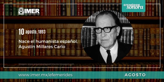 10 de agosto de 1893, Nace Agustín Millares Carlo, humanista español, Importante estudioso e investigador sobre los libros, la escritura y los libreros de la antigüedad, la literatura española hasta finales del siglo XV.