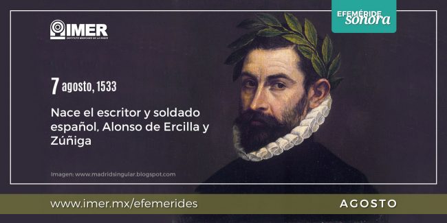 7 de agosto de 1533, Nace Alonso de Ercilla y Zúñiga, escritor y soldado español, autor del célebre poema épico “La Araucana” que relata la conquista de Chile, particularmente la Guerra de Arauco entre los españoles y mapuches o araucanos.