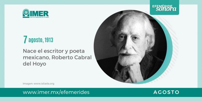 7 de agosto de 1913, Nace Roberto Cabral del Hoyo, escritor y poeta mexicano, Premio Nacional de Poesía Ramón López Velarde, autor de “De tu amor y de tu olvido”, “Tres de tus palabras”, “Contra el oscuro viento”, “Rastro de arena” y “Casa sosegada”.