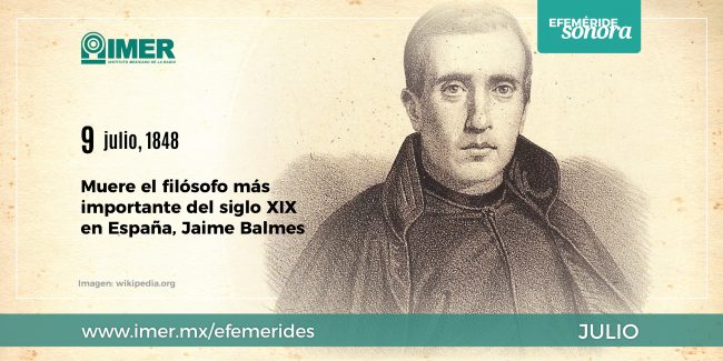 9 de julio de 1848, Muere Jaime Balmes, filósofo español, considerado el filósofo más importante de España del siglo XIX.