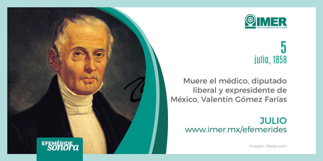 5 de julio de 1858, Muere Valentín Gómez Farías, médico y diputado liberal mexicano y Presidente de México en cinco breves ocasiones, considerado el Padre de la Reforma.