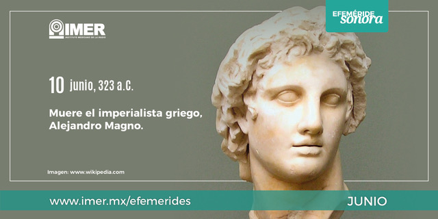 10 de junio de 323, Muere el imperialista griego, Alejandro Magno.