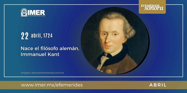 Nace Immanuel Kant, filósofo alemán, considerado uno de los pensadores más influyentes de la Europa Moderna y de la filosofía universal. Escucha “Crítica de la razón práctica”, una de las obras más importantes de Kant, narrada por Severo Mirón en el programa “Platícame un libro”, transmitido en 1987.