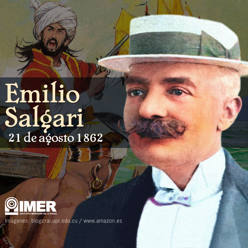 Nace Emilio Salgari, escritor italiano; escribe novelas de aventuras que lo hacen famoso en el mundo, autor de 84 novelas y numerosos relatos cortos, destacan “Los tigres de Mompracem” o “Los piratas de Malasia”. Varios de sus libros han sido llevados al cine y a la televisión con su personaje principal “Sandokan”. Tiene 48 años al morir. Escucha “El buque maldito” en el programa de Severo Mirón, “Platícame un libro”, transmitido en 1987.