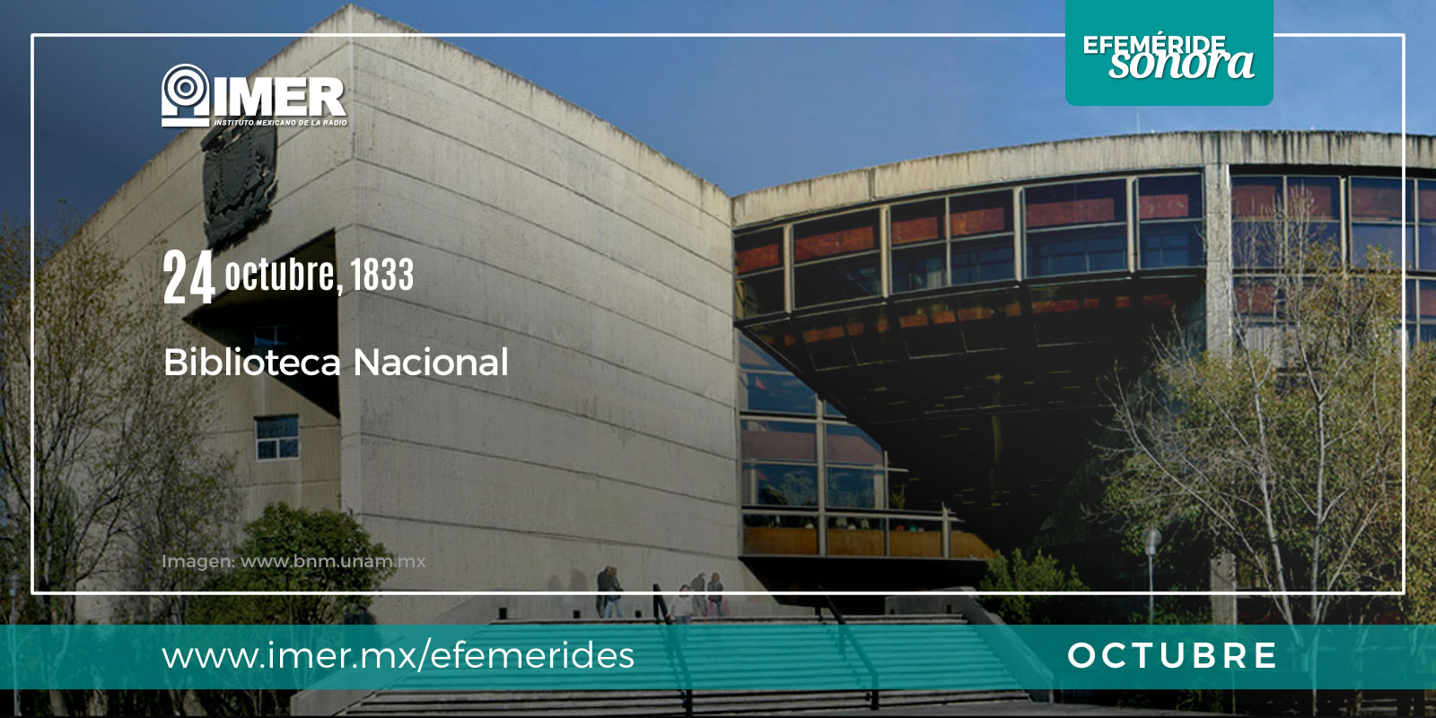 Biblioteca Nacional. El 24 de octubre de 1833 se crea la Biblioteca Nacional. Escucha un comentario sobre La Biblioteca Nacional en el programa “Cápsulas institucionales”, transmitido en 2001.