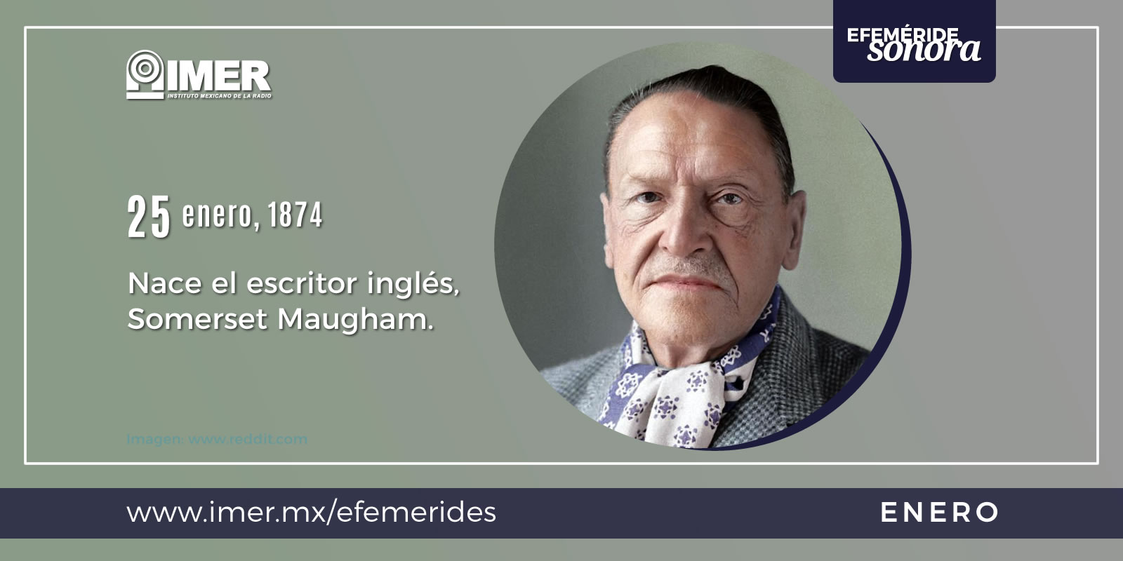 Nace Somerset Maugham, escritor inglés, autor prolífico de novelas, relatos, obras teatrales, biografías, libros de viajes y ensayos. Vive en Hollywood donde adapta gran parte de sus obras con gran éxito popular y económico. En la década de 1930 es considerado el escritor más popular y mejor pagado del mundo. Muere a los 91 años. Escucha “El final de la huida” en el programa “En tinieblas”, transmitido en 1989.
