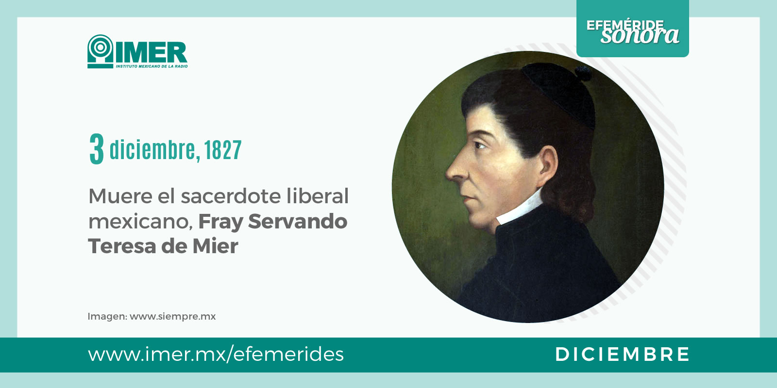 El 3 de diciembre de 1827 muere Fray Servando Teresa de Mier, sacerdote liberal mexicano, lucha por la independencia de México y escribe numerosos tratados sobre filosofía y política.