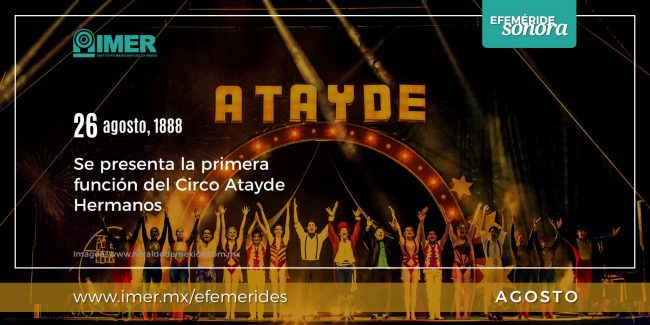 26 de agosto de 1888, Circo Atayde HermanosEl 26 de agosto de 1888 se presenta la primera función del “Circo Atayde Hermanos”, empresa mexicana fundada por los hermanos Aurelio y Manuel Atayde, de artes escénicas y circenses de la más alta calidad, especializada en brindar diversión y entretenimiento a las familias.