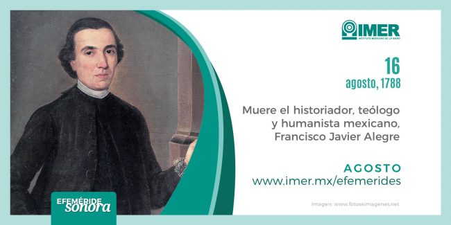 16 de agosto de 1788, Muere Francisco Javier Alegre, jesuita, historiador, poeta, teólogo, traductor e importante humanista mexicano del siglo XVIII, escribe “Historia de la provincia de la Compañía de Jesús en la Nueva España”, “La Alexandriada o la toma de Tiro por Alejandro de Macedonia”, traduce “La Ilíada” de Homero. Muere en la ciudad de Bologna, Italia a los 59 años.
