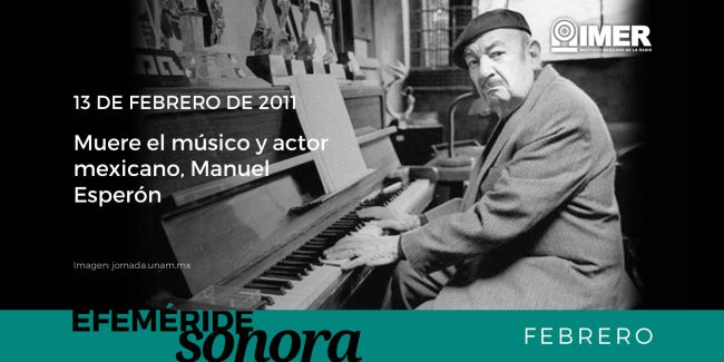 2011 Muere Manuel Esperón, músico y actor mexicano, considerado el más prolífero de la época de oro del cine mexicano. Llegó a ser director musical de cerca de 500 películas y paralelamente director artístico de varias estaciones de radio. Compositor de cabecera de los dos más grandes astros de la canción mexicana: Jorge Negrete y…