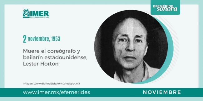 2 de noviembre de 1953, Muere Lester Horton, bailarín, coreógrafo y profesor estadounidense de danza moderna, crea un método, abre una escuela y su propio espacio escénico; es considerado uno de los pioneros la danza moderna.