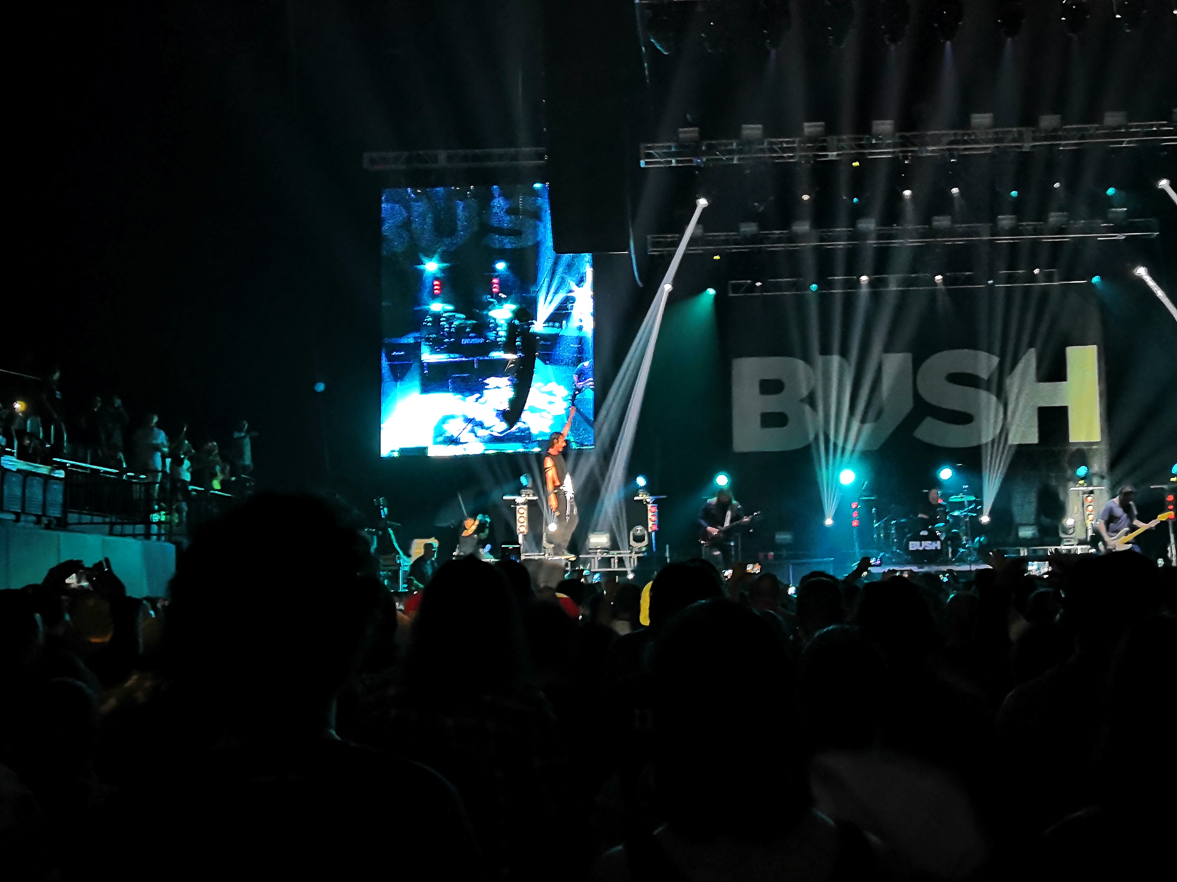 El ánimo de la gente tras la presentación de STP permanecía encendido y ávido de más rock. Bush arribó al escenario para poner punto final al Revolution Tour con la explosividad escénica y musical de Gavin Rossdale, Robin Goodridge, Chris Traynor y Corey Britz. Los británicos abrieron su actuación con “Machinehead”, de inmediato fue notorio el entusiasmo de Rossdale al compartir en español su emoción con un “todos estamos aquí juntos como hermanos por la música”.