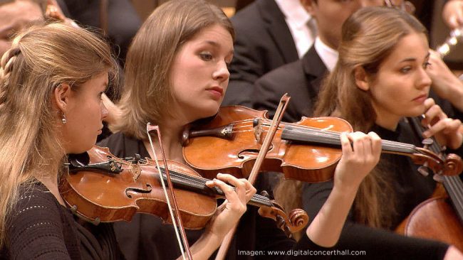 Simon Rattle dirige a una orquesta de estudiantes berlineses Para ver el video haga clic en el siguiente enlace: www.digitalconcerthall.com/es/concert/23837 Es necesario un registro gratuito en el sitio web.