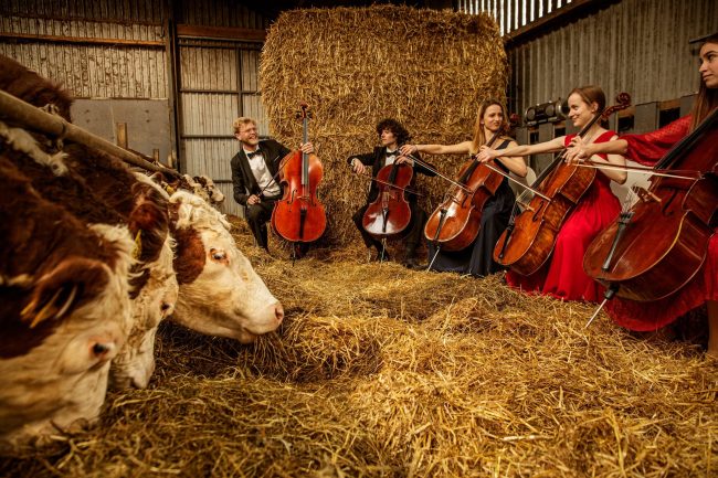 El domingo, en Lund, un pueblo situado a unos 80 kilómetros al sur de Copenhague, un grupo selecto de violonchelistas ofreció dos conciertos para unas vacas amantes de la música y sus congéneres humanos. Los recitales, que son el pináculo de una colaboración entre dos ganaderos locales, Mogens y Louise Haugaard, y Jacob Shaw, fundador de la cercana Escuela Escandinava de Violonchelo, tenían el propósito de atraer cierta atención hacia la escuela y los músicos jóvenes que viven ahí pero, a juzgar por la respuesta de los asistentes de dos y cuatro patas, también demostró cuán popular puede ser una iniciativa que acerca la vida cultural a las zonas rurales.