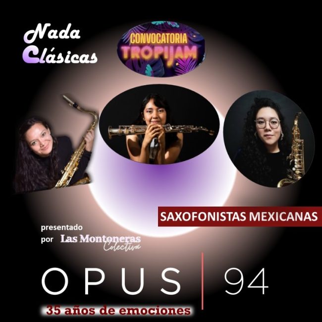 Las saxofonistas mexicanas Alma Rodríguez y Frida Montenegro junto la veracruzana Araceli Arroyo platicarán sobre su instrumento y reciben a Angélica Soriano de Tropicalísima 1350 AM y Lisset Tenorio de Jam de Morras para hablar de la convocatoria Tropi Jam.