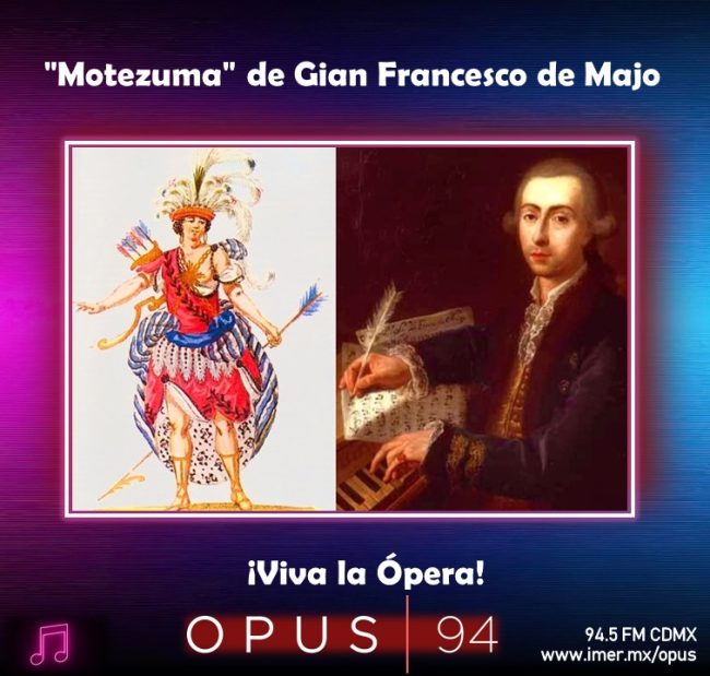 Erick Zermeño presenta la ópera “Motezuma” – “Moctezuma” del compositor Gian Francesco “Ciccio” de Majo (1732-1770), quien fue contemporáneo de Mozart. Esta peculiar obra fue estrenada en el Teatro Regio di Torino en 1765 y redescubierta por el maestro Antonio Florio en años recientes. Tendremos extractos de la grabación en directo de 2003 del Stadttheater de Aschaffenburg, Alemania bajo la dirección de Antonio Florio y el Ensamble de la Cappella della Pietà de´ Turchini. Buon ascolto!