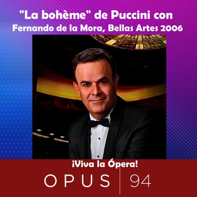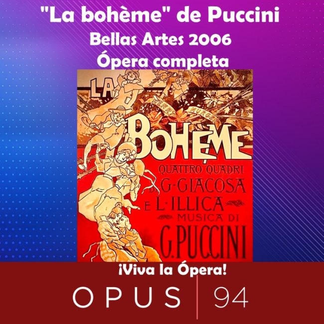 Erick Zermeño presenta “La bohème” – “La bohemia” de Giacomo Puccini. Compartiremos una grabación en directo de una función de 2006 presentada en el Teatro del Palacio de Bellas Artes de México, bajo la dirección del maestro mazatleco Enrique Patrón de Rueda, con la soprano rusa Olga Makarina como Mimì y el tenor Fernando de la Mora como el poeta Rodolfo en los roles protagónicos. Buon ascolto!