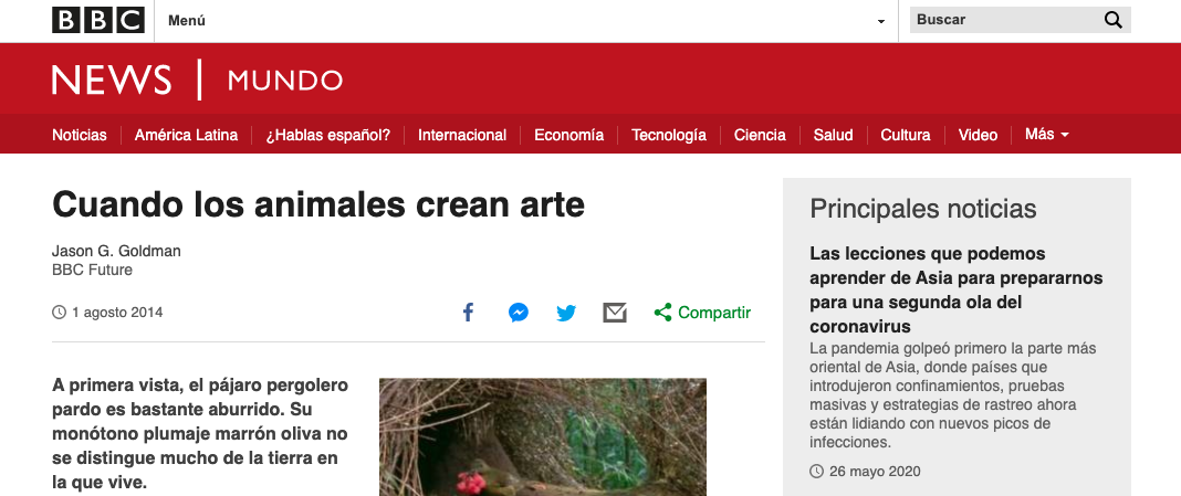 Arte, Cerebro y animales Músico invitado: Acuarela https://www.imer.mx/wp-content/uploads/sites/36/Arte-cerebro-y-animales-Reto-Viral.mp3 Aquí te dejamos algunas ligas de animales y sus expresiones de comunicación y estéticas https://www.youtube.com/watch?v=aFUndpNvDY0 Lápices acuareliables Conoce más retos aquí: Reto Viral 14 y 15 de mayo Reto Viral 7 y 8 de Mayo Reto Viral 26 y 27 de abril Reto Viral 19 y 20 de abril Reto Viral 12 y 13 de abril Reto Viral 5 y 6 de abril Reto Viral 26 y 27 de marzo Reto Viral 19 y 20 de marzo Reto Viral 12 y 13 de marzo Reto Viral 5 y 6 de marzo Reto Viral 26 y 27 de febrero Reto Viral 19 y 20 de febrero Reto Viral 5 y 6 de febrero Reto Viral 8 y 9 de enero Reto Viral 1 y 2 de enero Reto Viral 18 y 19 de diciembre Reto Viral 4 y 5 de diciembre Reto Viral 27 y 28 de noviembre Reto Viral 20 y 21 de Noviembre Reto Viral 13 y 14 de Noviembre Reto Viral 6 y 7 de Noviembre Reto Viral 30 y 31 de Octubre Reto Viral 23 y 24 de Octubre Reto Viral 16 y 17 de Octubre Reto Viral 9 y 10 de Octubre Reto Viral 2 y 3 de Octubre Reto Viral 25 y 26 de Septiembre Reto Viral 18 y 19 de Septiembre Reto Viral 11 y 12 de Septiembre Reto Viral 4 y 5 de Septiembre Reto Viral 28 y 29 de agosto Reto Viral 21 y 22 de agosto Reto Viral 14 y 15 de agosto Reto Viral 7 y 8 de agosto Reto Viral 31 de julio y 1 de agosto Reto Viral 22 y 25 de julio Reto Viral 17 y 18 de julio Reto Viral 10 y 11 de julio Reto Viral 3 y 4 de julio Reto Viral 26 y 27 de junio Reto Viral 19 y 20 de junio Reto Viral 12 y 13 de junio Reto Viral 5 y 6 de junio Reto Viral 29 y 30 de mayo Reto Viral 22 y 23 de mayo Reto Viral 15 y 16 de mayo Reto Viral 8 y 9 de mayo Reto Viral 1 y 2 de mayo Reto Viral 24 y 25 de abril Reto Viral 17 y 18 de abril Reto Viral 10 y 11 de abril Reto Viral 3 y 4 de abril Reto Viral 27 y 28 de marzo Reto Viral 20 y 21 de marzo Reto Viral 13 y 14 de marzo Reto Viral 6 y 7 de marzo Reto Viral 27 y 28 de febrero Reto Viral 20 y 21 de febrero Reto Viral 13 y 14 de febrero Reto Viral 6 y 7 de febrero Reto Viral 30 y 31 de enero Reto Viral 23 y 24 de enero Reto Viral 16 y 17 de enero Reto Viral 9 y 10 de enero Reto Viral 2 y 3 de enero Reto Viral 26 y 27 de diciembre Reto Viral 19 y 20 de diciembre Reto Viral 12 y 13 de diciembre Reto Viral 5 y 6 de diciembre Reto Viral 28 y 29 de noviembre martes 26 de mayo de 2020 Compartir esta publicación: Share on FacebookShare on Facebook Share on XShare on X Share on WhatsAppShare on WhatsApp Related postsReto Viral 14 y 15 de mayosábado 14 de mayo de 2022Reto Viral 7 y 8 de Mayosábado 7 de mayo de 2022Reto Viral 26 y 27 de abrilmartes 26 de abril de 2022Reto Viral 19 y 20 de abrilmartes 19 de abril de 2022Reto Viral 12 y 13 de abrilmartes 12 de abril de 2022Reto Viral 5 y 6 de abrilmartes 5 de abril de 2022