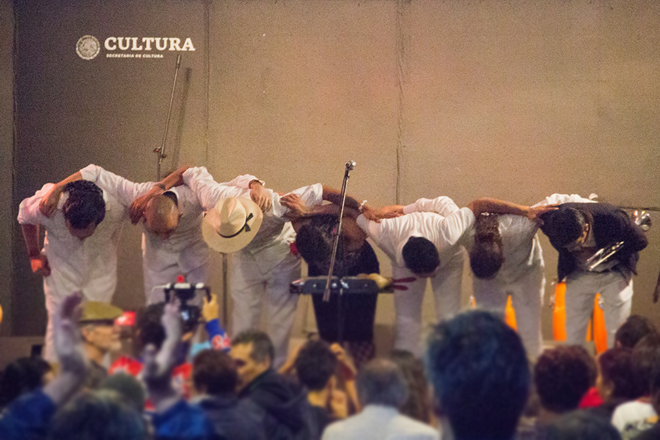 Fue una tarde deliciosa. El patio del Museo estuvo lleno y nadie dejó de bailar. La lluvia, que cayó en los primeros minutos de la presentación, no mermó los ánimos y todos continuamos atentos a la música y al ritmo. Las décimas improvisadas de Citlali Malpica, abrieron la fiesta. Siguió una presentación interesante y precisa de Ishtar Cardona que habló de la fuerza vivificadora de los sonidos musicales que entraron por el Atlántico mexicano y que hicieron de nuestro país un lugar de guaracha y de rumba. La música inició con la “Cita en el Platanar” y el júbilo que se proyectaba desde el escenario nos fue contagiando a todos. En algún momento tomó la palabra la poeta tlacotalpeña Melania Jiménez, artesana del verso, que compartió una décima suya que inspiró una de las canciones más bellas del disco. La enorme sonrisa de Karina, su canto, la maestría y precisión de todos los músicos, la impecable comunicación entre ellos, la cercanía con el público…, todo eso marcó la ruta de una fiesta deliciosa. Una a una, fueron sonando todas las canciones del disco, y el ánimo no decayó en ningún momento.