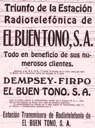 El 14 de septiembre de 1923 está registrado como fecha de la primera transmisión oficial de CYB (hoy XEB), que consistió en la narrativa de la pelea que sostuvieron los boxeadores Luis Ángel Firpo “El toro de las pampas” y Jack Depmsey, en el Estadio Polo Grounds de Nueva York, ante 80,000 espectadores. No se…