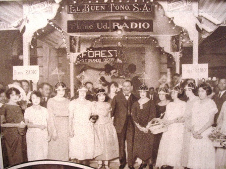 La gráfica corresponde al momento en que el general Álvaro Obregón, entonces Presidente de la República, inauguró la Primera Feria del Radio, en el Palacio de Minería. Se aprecia el stand de la Compañía Cigarrera del Buen Tono y la vestimenta sui géneris de las edecanes que ofrecían tabacos marca “Radio”. Periódico Excélsior, 26 de junio de 1923.